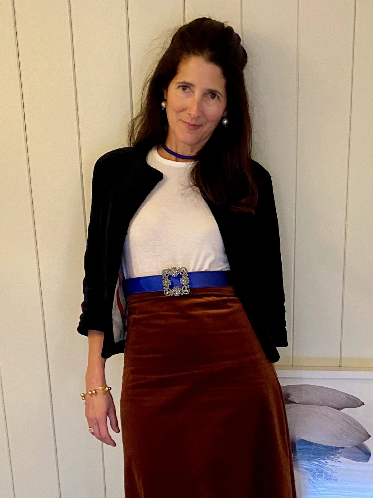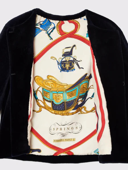 We designed this chic jacket in collaboration with Amanda Ross, a true beauty inside and out. She chose to use a special Hermès scarf to line it. "...my grandmother and all her chic-ness, wonderful style and warmth all in one lining."